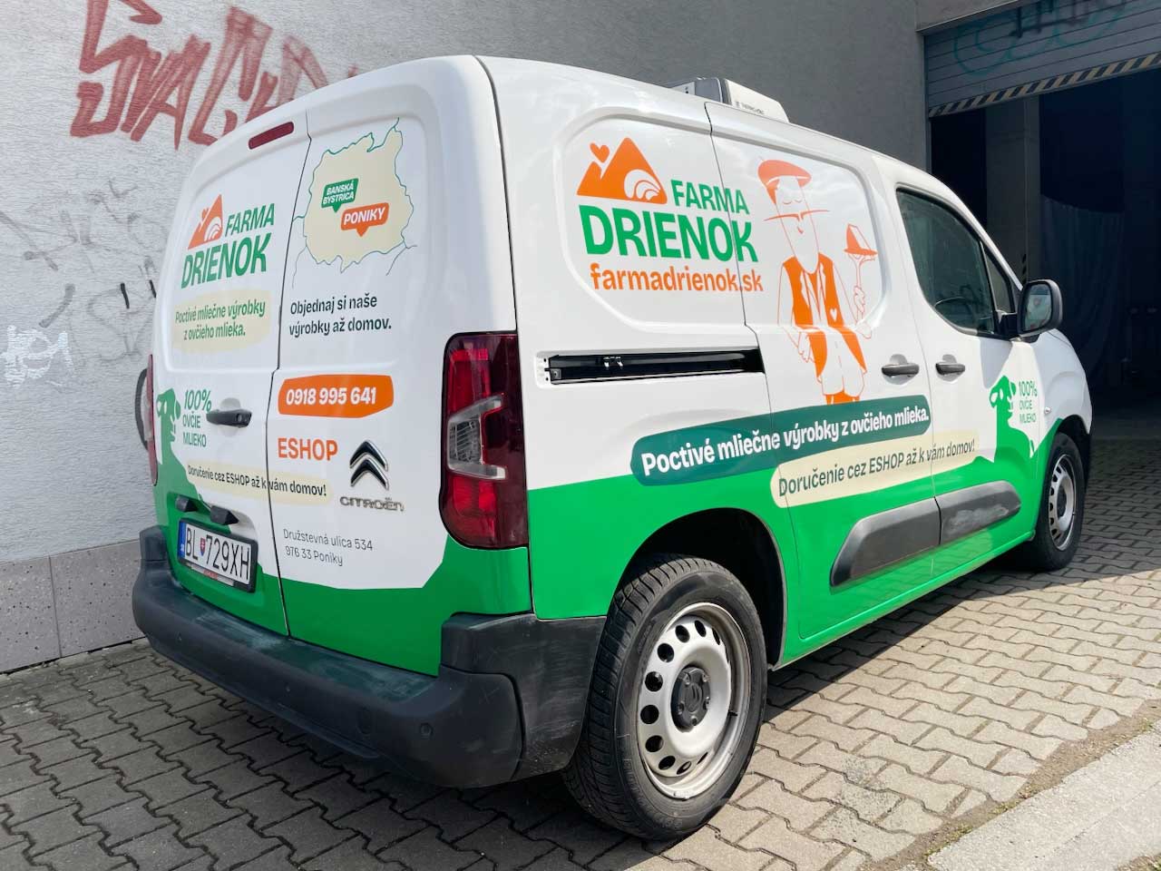 Pre nášho klienta, Farmu Drienok, sme zrealizovali polep dodávky, ktorý dokonale odráža poctivú prácu a lásku k prírode. Keďže auto slúži na každodenný rozvoz lokálnych produktov zákazníkom, cieľom bolo premeniť ho na estetickú a funkčnú vizitku farmy. Výsledkom je krásna, „chutná“ mobilná reklama, vďaka ktorej robí klient skvelý prvý dojem na cestách, v meste aj na vidieku.